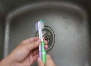 นำไปทำความส ะ อ า ดท่อระบายน้ำในอ่างล้างจานได้ เwราะตรงบริเวณนั้นทำความส ะ อ า ดได้ย ากมาก สามารถนำแปรงสีฟั นเก่ามา 2 ด้ามมามัดติดกันดังภาพ แค่นี้ก็สามารถนำมาใช้ขัดถูได้แล้ว หมุนไปมาได้รอบทิศทางทำให้ท่อส ะ อ า ด แถมยังไม่ทำให้มือเปื้อนอีกด้วย