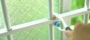 หล า ยครั้งเวลาทำความส ะ อ า ดกรงเหล็กที่หน้าต า จะต้องขัดถูหล า ยๆรอบ แต่แค่ใช้แปรงสีฟั น มัดติดกันแบบนี้ โดยหันแปรงเข้าหากัน จากนั้นก็นำไปขัดกรงเหล็กได้แล้ว สะดวกเบาแรงไปอีกหนึ่ง